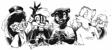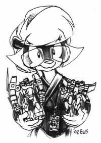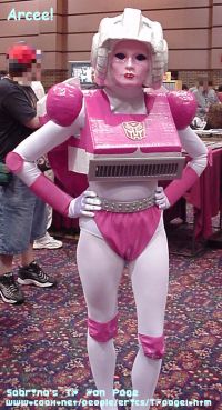 Botcon 2002 was held at the Grand Wayne Center in Fort Wayne Indiana, the same location it was held two years ago, so I already had a vague idea of where to go. I took a slightly different route than I did last time, which turned out to be a little faster, as it didn't go through as many small towns. As reached Ft. Wayne, I got a little confused by the layout of the streets and highways, and took an exit which sent me the wrong way on the outerbelt for a while, so I ended up coming in from the north, instead of the east. I finaally found the convention center and its parking garage, and went in. Just like previous years, Friday only allowed pre-registered people to pick up their membership packets, which I did. Included with the convention packet was a badge, con book, a lollipop with the image of Optimus Prime, an art print to advertise an upcoming book, a T-shirt I ordered, and one of the con-exclusive toys. This one was 'Tap-out', a green and gray version of the Cliffjumper mini-bot keychain. It's pretty cool to see an exclusive that isn't a recolored Beast Wars toy for a change. I was also able to put a couple of my Transformers drawings into the art show. I'd rarely felt so well prepared for a convention in my life, so I explored the streets surrounding the center for a little while, or at least until it started raining lightly. I went back to my car and set off to find a hotel. I found a Holiday Inn about 5 miles and another misstep on the highway out, which seemed pretty nice, at least from the outside. The place had a big swimming pool at its center, but after checking in, I discovered the pool didn't look very clean to me, almost like pudding with a skin over the top. Needless to say, I never ended up using it. Instead I took a book and my convention materials to the lobby, and relaxed, taking in the occasional whiff of chlorine from the pool. After an hour or two in the lobby, I got my biggest surprise of the weekend. I heard a familiar voice, and looked up to see Zig Zag walking my way. Apparently the guy she's been seeing is also a Transformer fan, and she joined him coming here. I'm hoping our choice of the same hotel was just a coincidence. Zig sat with me for a little while and we chatted. She asked me about what kind of things she might expect to see at the convention. I was worried she might do something disruptive there, but she seemed more curious than anything. She told me she did consider a nude dip in the hotel pool, but changed her mind after I showed it to her. We both ran off to a nearby McDonalds for a quick dinner - make that a slow dinner factoring in the service. We returned to the hotel and went to our separate rooms. I set up my Primal Prime and my new Armada Starscream toy as the mascots for this trip and, after a little television, laid back for a good night's sleep. Unfortunately, my night wasn't too restful as it turns out my room was across the hall from Zig and her boyfriend's room. I'll spare you the details, but she was a bit noisy.